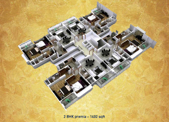 2 BHK 1402sq.ft – 1755 sq. .ft ( 4 Apartment per floor)