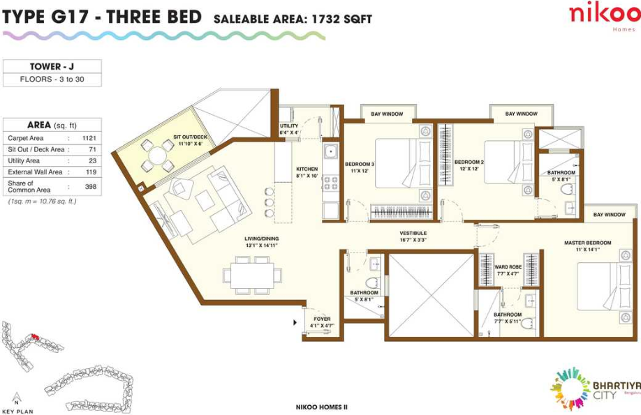 Units and Interiors:. Bhartiya City Nikoo Homes II comprises of 1 BHK, 1.5 BHK, 2 BHK, 2.5 BHK, 3 BHK and Studio BHK Apartments that are finely crafted and committed to provide houses with unmatched quality. The Apartments are spacious, well ventilated and Vastu compliant.