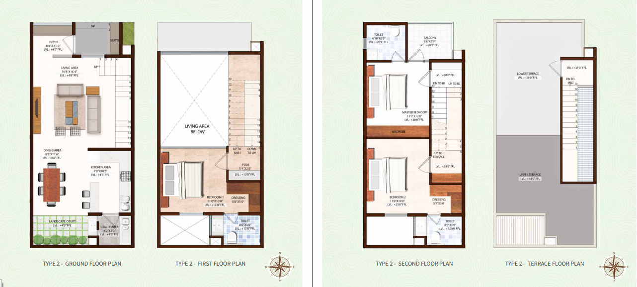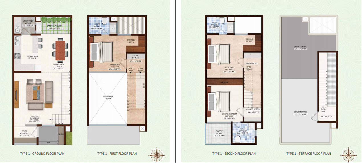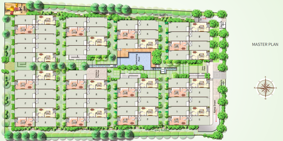 Zen Garden features 75 row houses, each house is a 3BHK G+2 floor structure with a built-up area of 1753 SQFT. Your home in Zen Garden comes with all modern amenities such as swimming pool, sauna/jacuzzi, Zen style landscaped gardens, clubhouse with gymnasium etc. Project features basement car parking only, which leaves the ground area with no traffic circulation and safe for kids to play. These homes are created through an artful arrangement of concrete, glass and green. The plan and designs are weaved around natural light and wind and much like the classical Japanese gardens rockets one’s Mind Body and Intellect to the sublime.