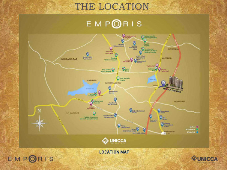 About Project : Emporis is a residential community developed by the Unicca Group in Varthur, Bangalore. the community offers amenities including gymnasium, multipurpose room, cafeteria; kids’ play area and swimming pool. Varthur is one of the emerging areas of Bangalore which is close to the International Tech Park. Salaried employees of companies based here are the main buyers of property in the neighbourhood. The Kempegowda Airport is at 50 kilometres while the Bangalore City Railway Station is at 16.7 kilometres. The Peripheral Ring Road which is under construction will connect the area to Kanakapura Road, Magadi Road and Mysore Road. The area has a number of hospitals such as Kulkarni and Citi Hospital, schools including Ryan International and shopping complexes for instance the Cosmos Mall.