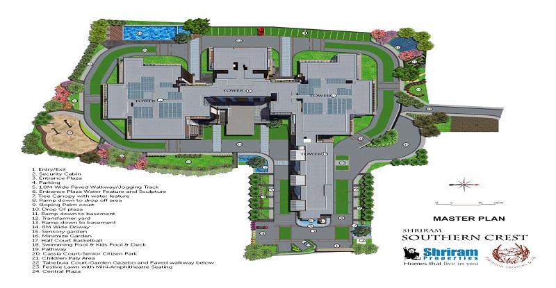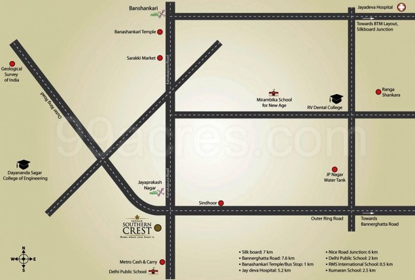 Shriram Southern Crest Sprawling over 3.88 acres of land having most charming greeneries that is entirely spread all through till your eyes can reach. Shriram Southern Crest JP Nagar is one of the carefully planned projects that is adorned with all the accelerating features of the ultra avant-garde era, enabling you to sense the exclusivity as well as a character at every end. The project is conveniently located in JP Nagar 6th phase, Bangalore and enjoys close proximity to all social facilities.